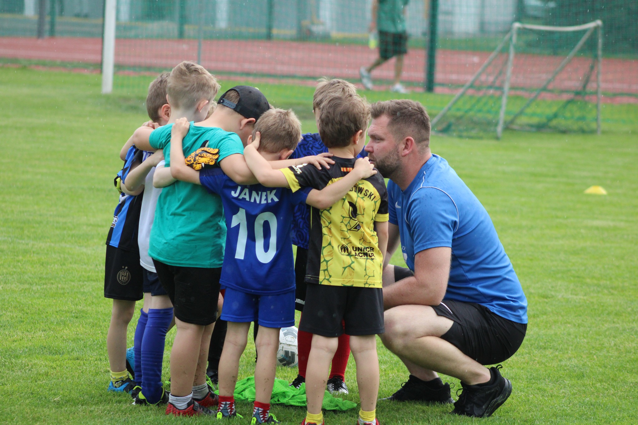 Najlepiej skontaktować się z trenerem. Generalna zasada jest taka, że trenerzy zawsze są na obiektach w godzinach treningów (bez względu na warunki pogodowe). Jeżeli jest zachmurzone niebo, bądź lekko pada należy ubrać dziecko w kurtkę przeciwdeszczową (w tzw. ortalion).